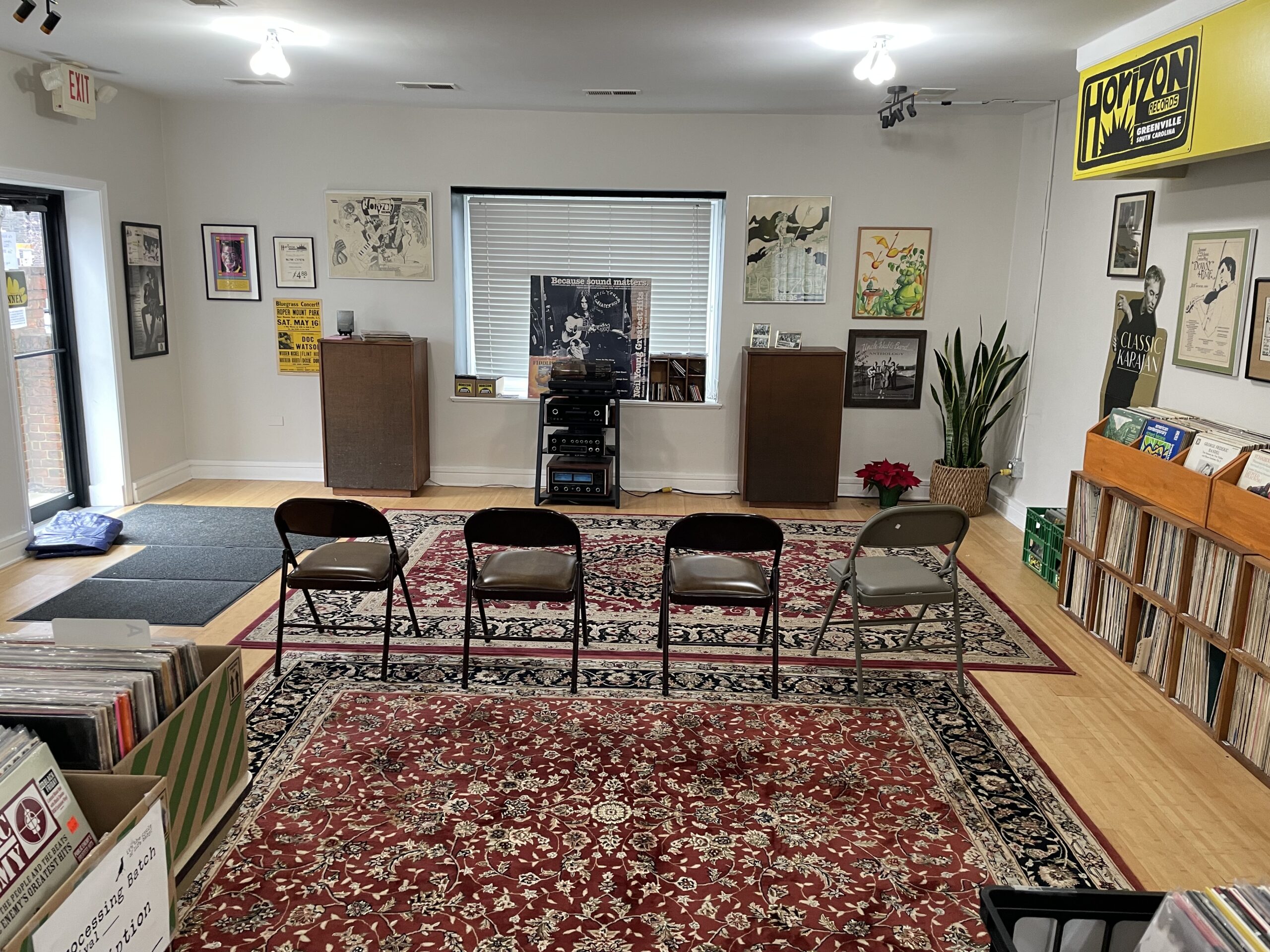 Hey friends. We are setting up (mostly) regular hours for The Annex. Check here for updates but the plan for now is every other Saturday (first and third of the month) from 1pm to 4pm. We are also announcing Monday hours 1pm – 5pm every other week. For those who haven’t visited the Annex, it’s the building right next door to Horizon Records at 10w Stone Ave and is where we receive and process big collections and lots of incoming records and CDs. It’s mostly arranged by collection & genre and have yet to be priced for retail in the store. If you find records you want, Chuck or Justin will price them on the spot and credit card payment is accepted for whatever you choose to purchase. We also have a beefy McIntosh hi-fi playing a rather Gene centric playlist plus local music history and Horizon memorabilia going up on the walls. It’s our new play space and hope you come check it out! Hours are subject to change so call (864-235-7922) or check back for updates.